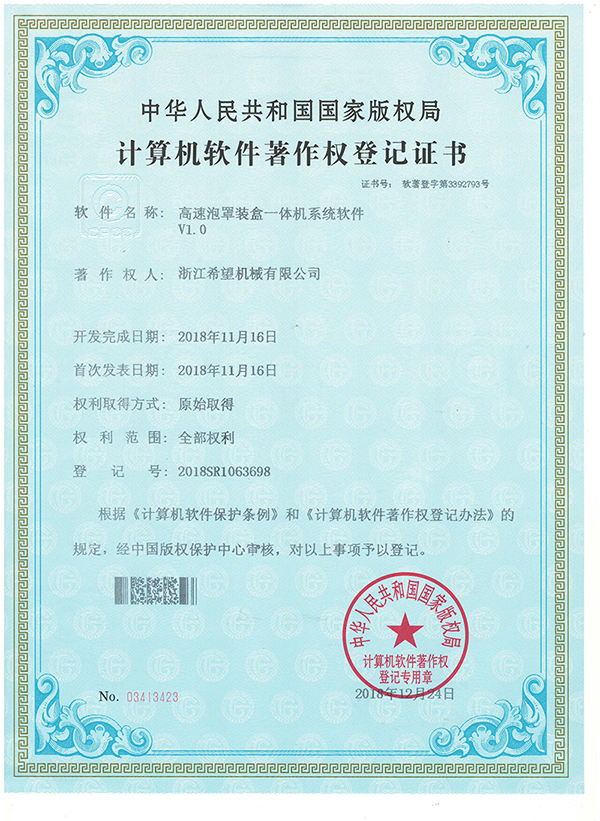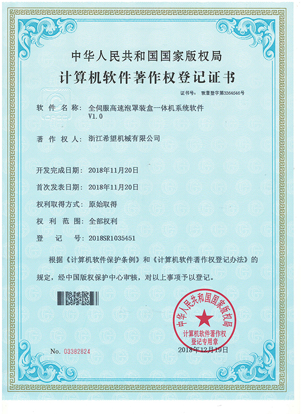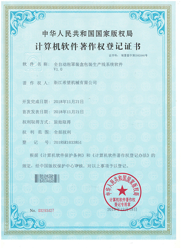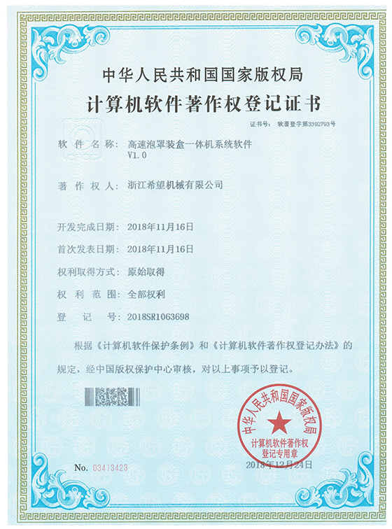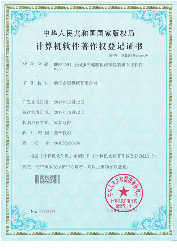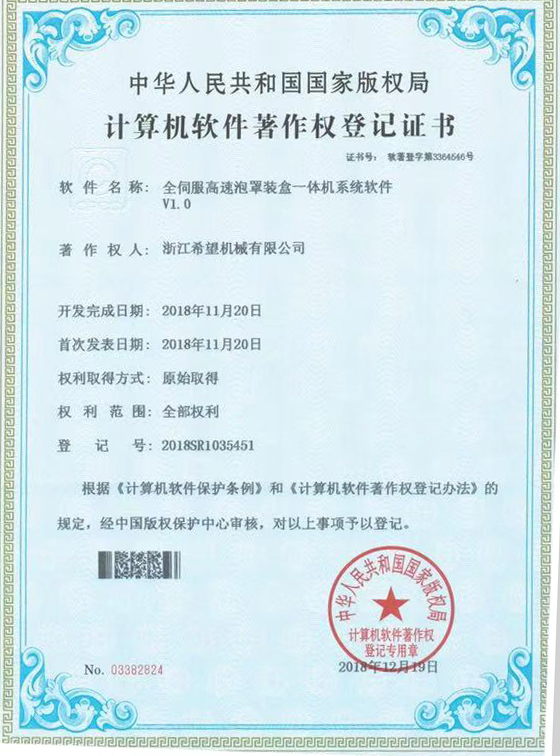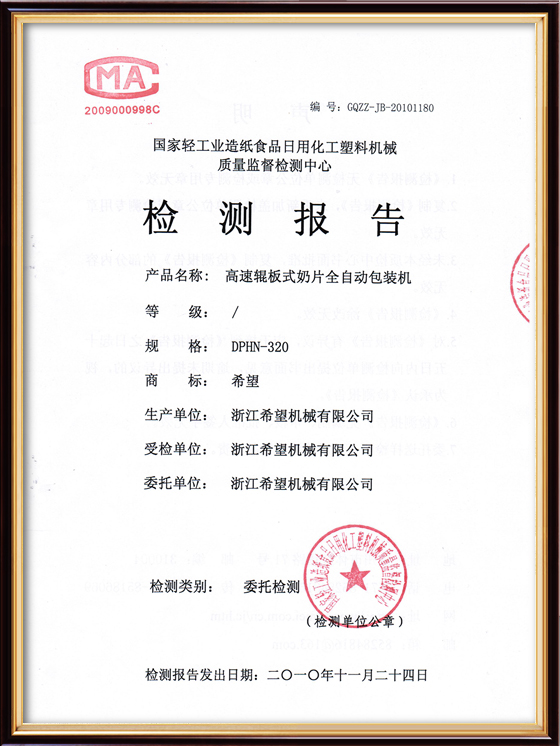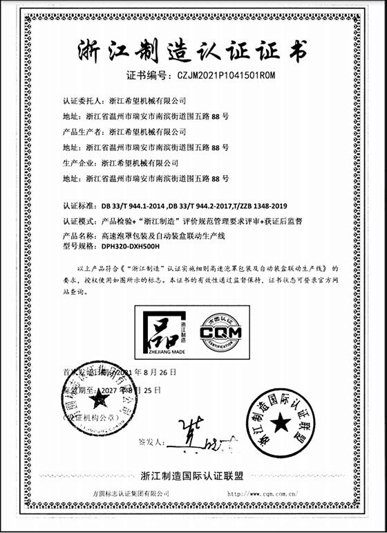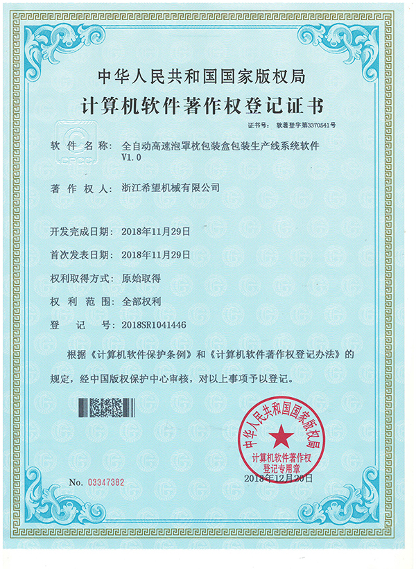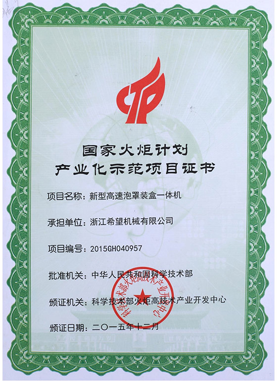 2008年推出全新的適用于化妝品包裝的面膜、眼貼等系列包裝機及生產(chǎn)線設備。同年更名為:浙江希望機械有限公司,注冊資金500.5萬元。