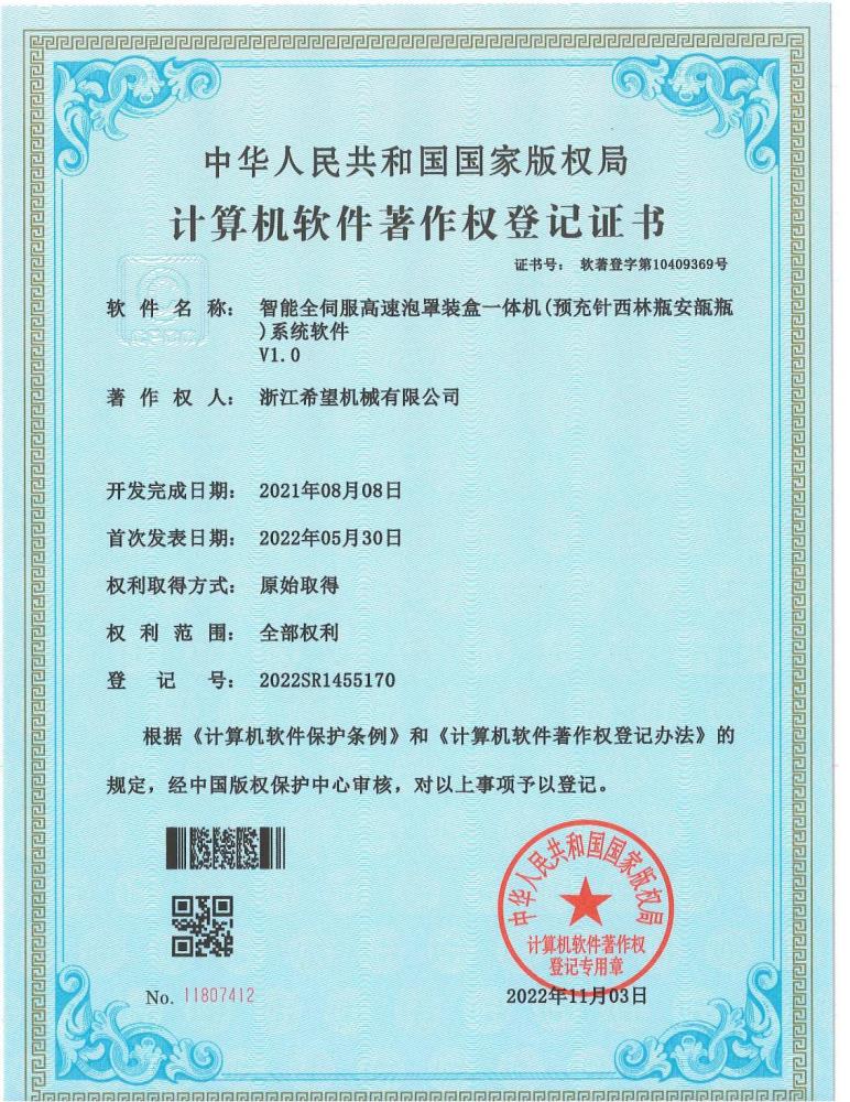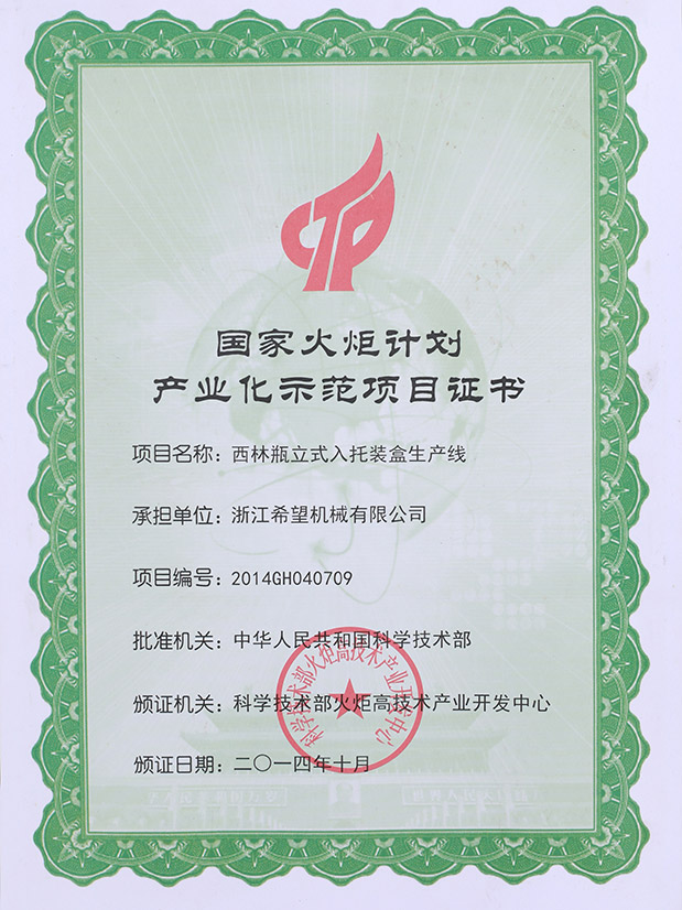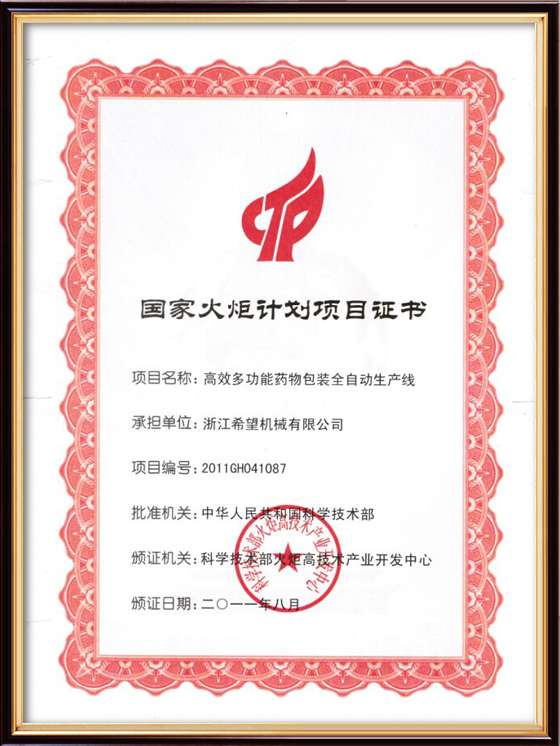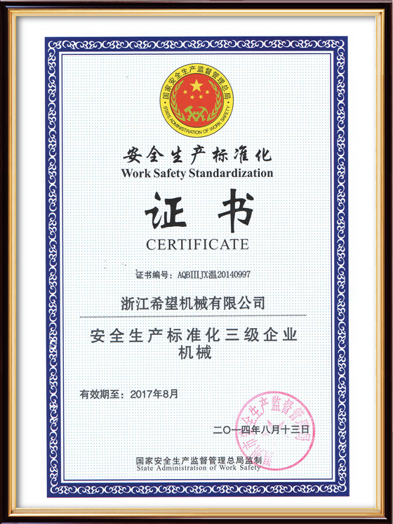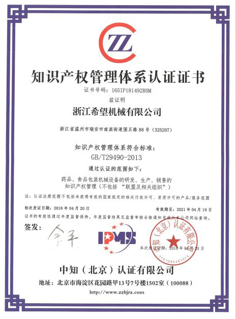 “希望”公司是中國制藥裝備行業(yè)協(xié)會理事單位,已通過ISO9001國際質(zhì)量管理體系認證、ISO14001環(huán)境管理體系認證、ISO45001職業(yè)健康安全管理體系認證、歐盟CE認證、知識產(chǎn)權(quán)貫標認證及浙江制造認證。