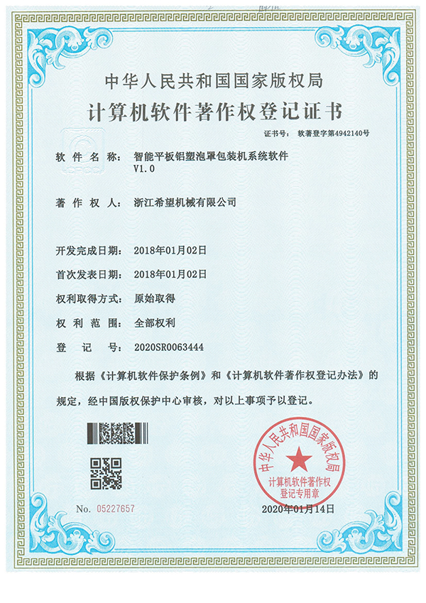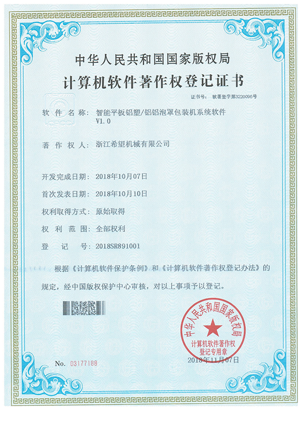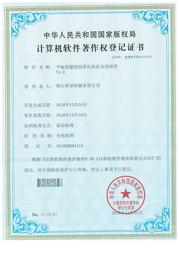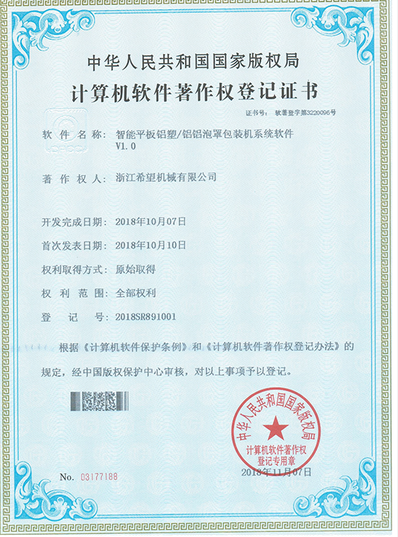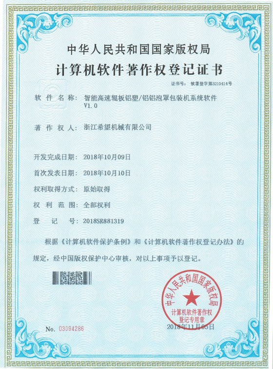2011年9月14日,公司的“一種智能型高速輥板式泡罩包裝機”獲得發(fā)明專利授權(quán),專利號為ZL201010213970.1。