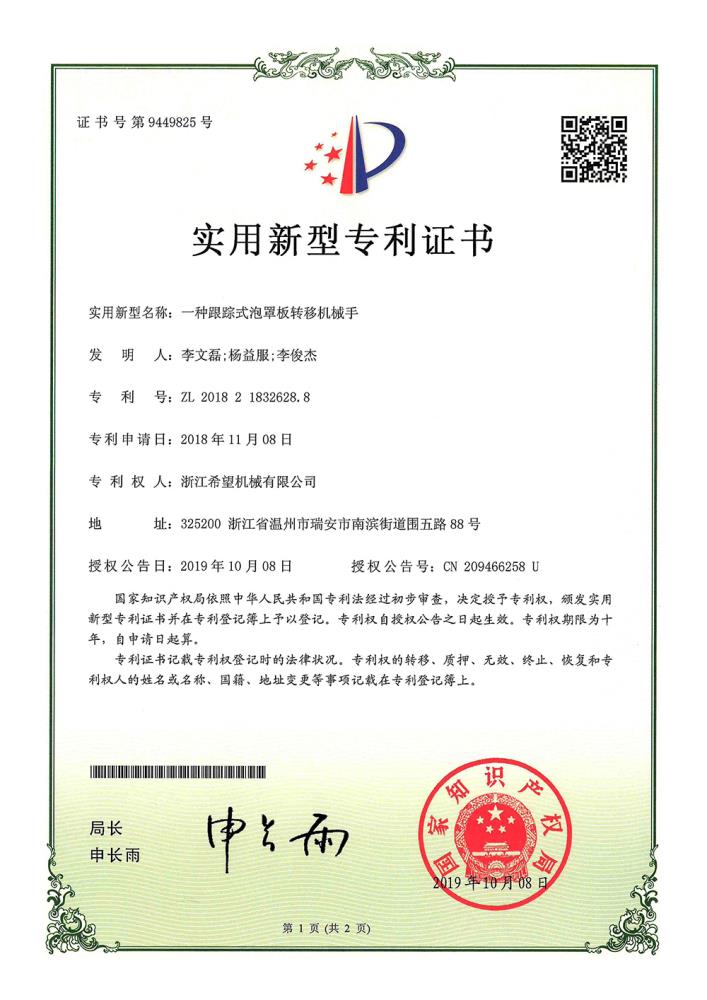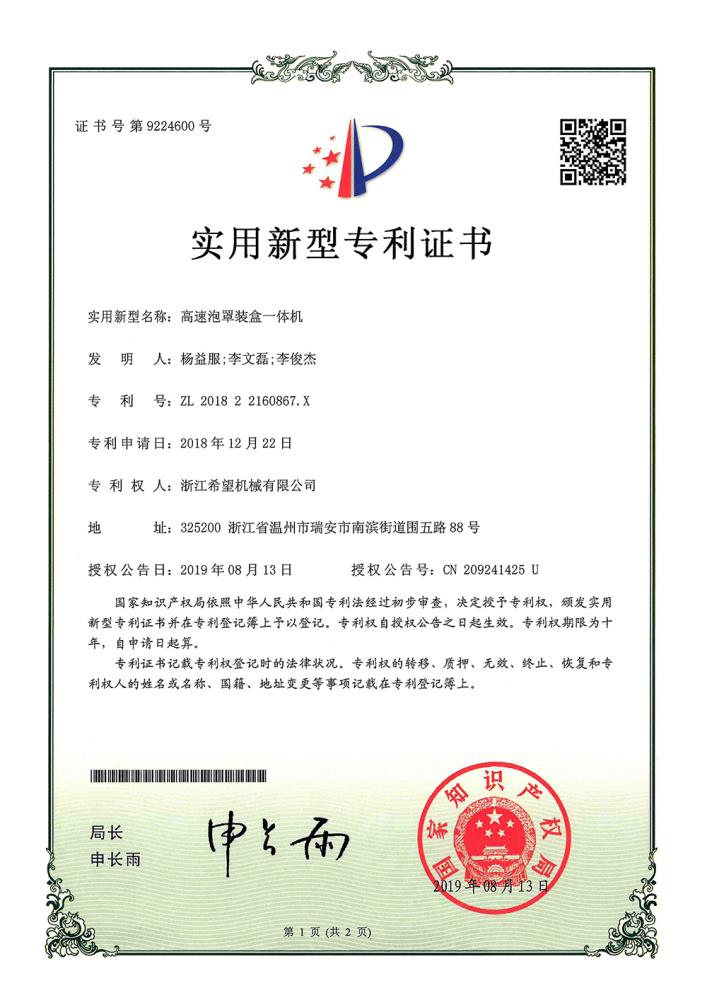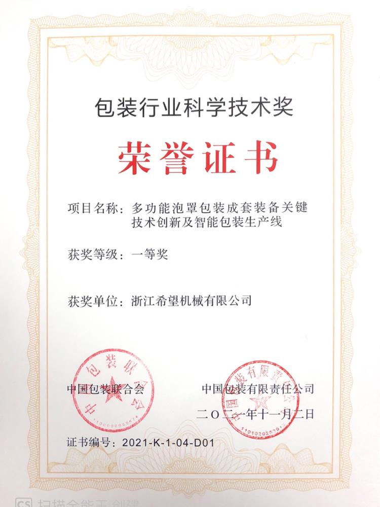 2019年“數(shù)字式高速泡罩雙軌枕包合流裝盒一體機”獲省重大項目,“ 高速泡罩枕包裝盒雙軌雙用一體機”獲溫州首臺套產(chǎn)品;“多 功能泡罩枕包裝盒一體機”獲省技術(shù)創(chuàng)新重點項目;公司獲浙江省‘隱形冠軍培育企業(yè)”