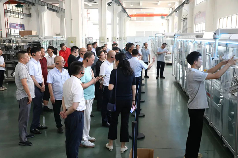 會議期間,與會人員走進(jìn)希望公司,實(shí)地考察全自動泡罩裝盒一體機(jī)運(yùn)行情況。